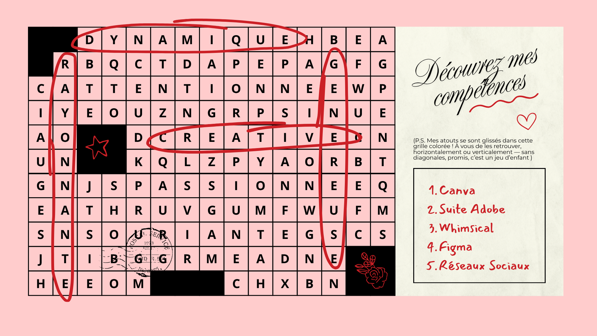 J’ai 21 ans, et je suis une passionnée de design et de création visuelle. Ce qui m’anime, c’est l’harmonie des couleurs, des formes et des typographies — ces petits détails qui transforment une idée en émotion. J’aime donner vie à des concepts, imaginer des univers, et créer des visuels qui reflètent à la fois l’âme d’une marque et un peu de la mienne. À travers mes projets, je cherche toujours à raconter une histoire, à transmettre une énergie — solaire, douce et authentique. Je vous invite à plonger dans mon univers, celui où chaque création est née d’un rêve, d’une envie ou d’un rayon de soleil.