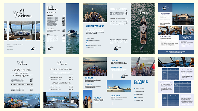 J’ai réalisé mon BTS GPME en alternance au sein de l’entreprise familiale Yacht Gavrinis. Durant ces deux années, j’ai entièrement repensé la charte graphique de la marque, modernisé les réseaux sociaux et recréé l’ensemble des supports visuels, des cartes aux affiches.