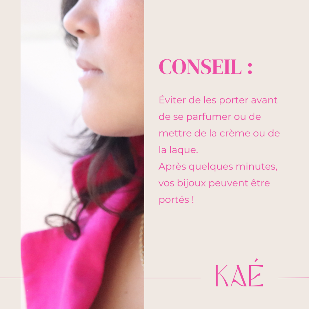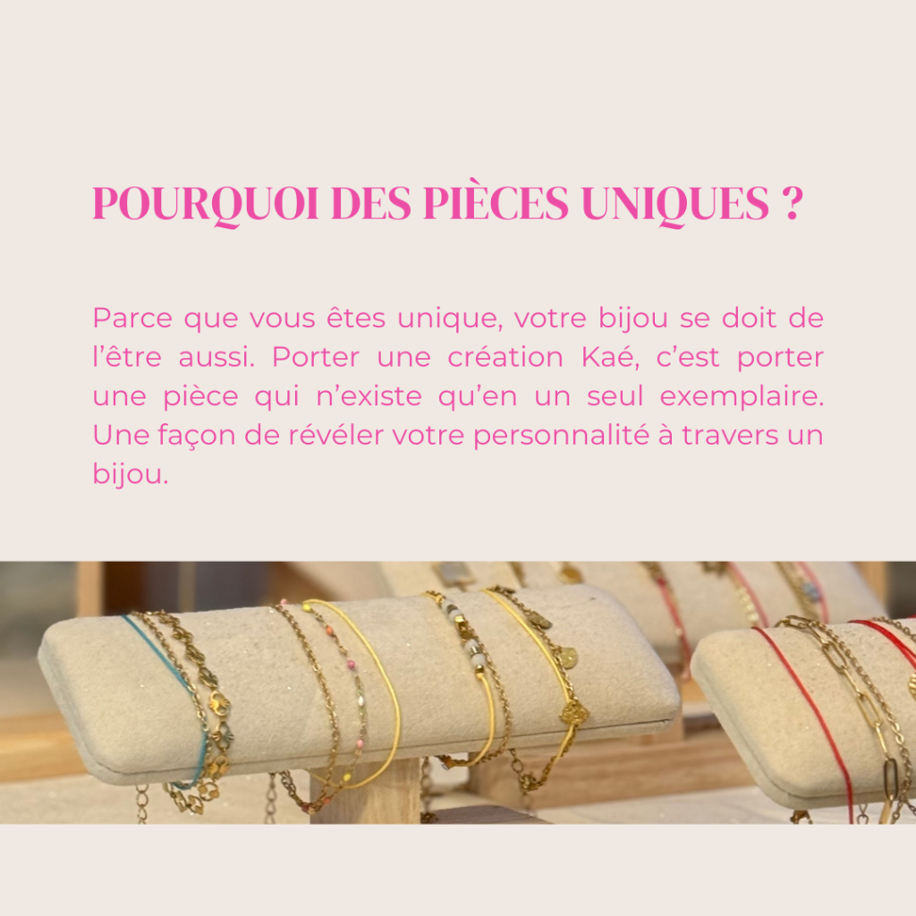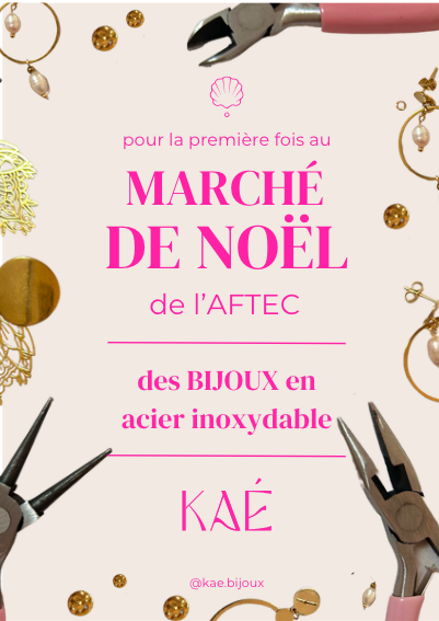Pour l’affiche, j’ai choisi de mettre en avant le rose emblématique de Kaé, tout en décorant le visuel avec les outils que j’utilise pour fabriquer mes bijoux. Cela permet de souligner l’aspect artisanal de mon travail et de montrer que chaque pièce est créée avec passion et savoir-faire.