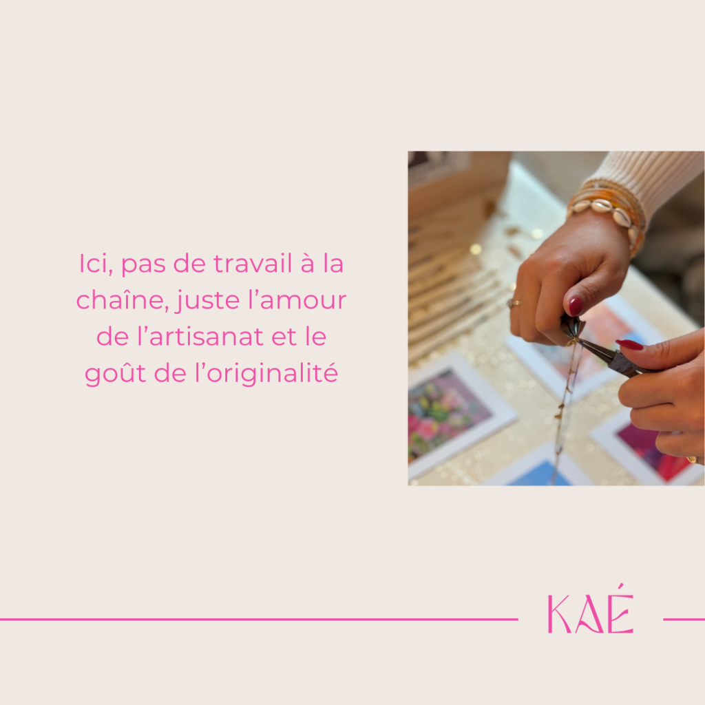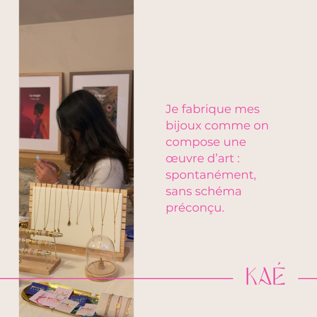J’ai créé Kaé Création en août 2022, un peu sur un coup de tête, encouragée par mon père et portée par l’envie de me lancer. Cette entreprise de bijoux a été pour moi un vrai terrain d’expérimentation, autant sur le plan créatif que personnel.