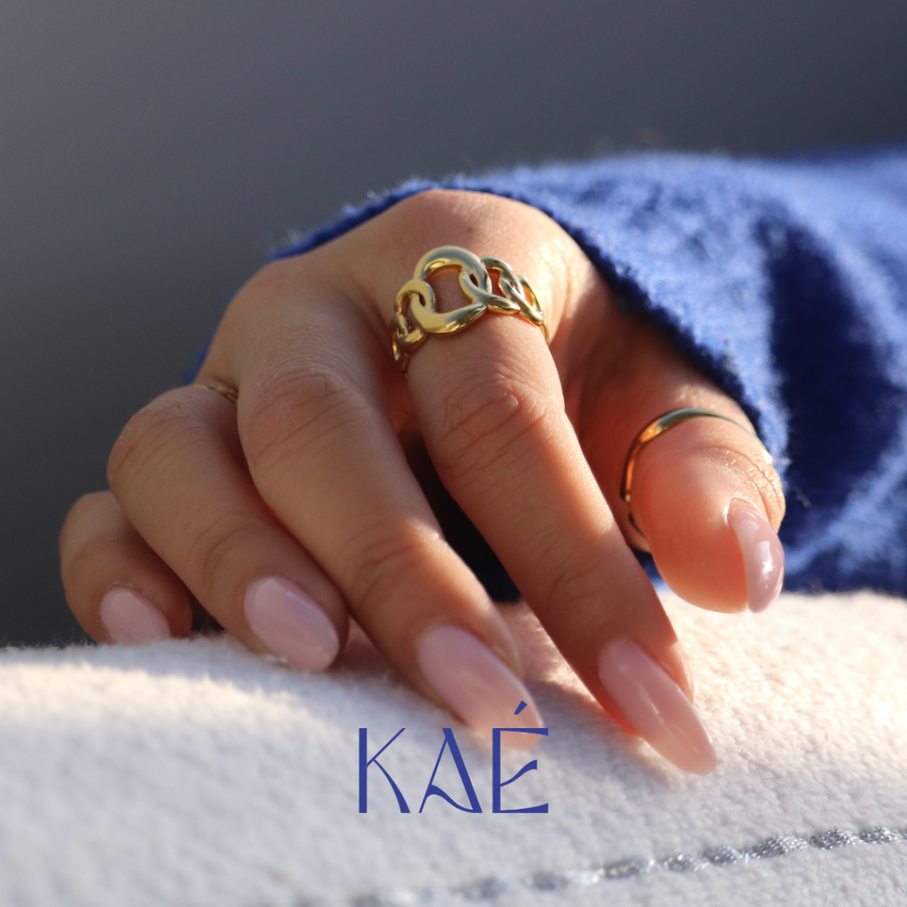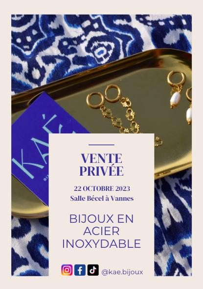 Le premier visuel de ma première vente privée était axé sur le bleu caractéristique de Kae, mettant en avant la qualité de mes bijoux. L’acier inoxydable, le matériau que j’utilise, résiste à l’eau et au temps, assurant ainsi une durabilité exceptionnelle à chaque pièce. Les typographies ont bien évidemment été respectées pour maintenir la cohérence avec la charte graphique de la marque. Puisqu’il s’agissait de ma première vente privée, cela a été un coup de pression, afin que mon travail soit parfait.
