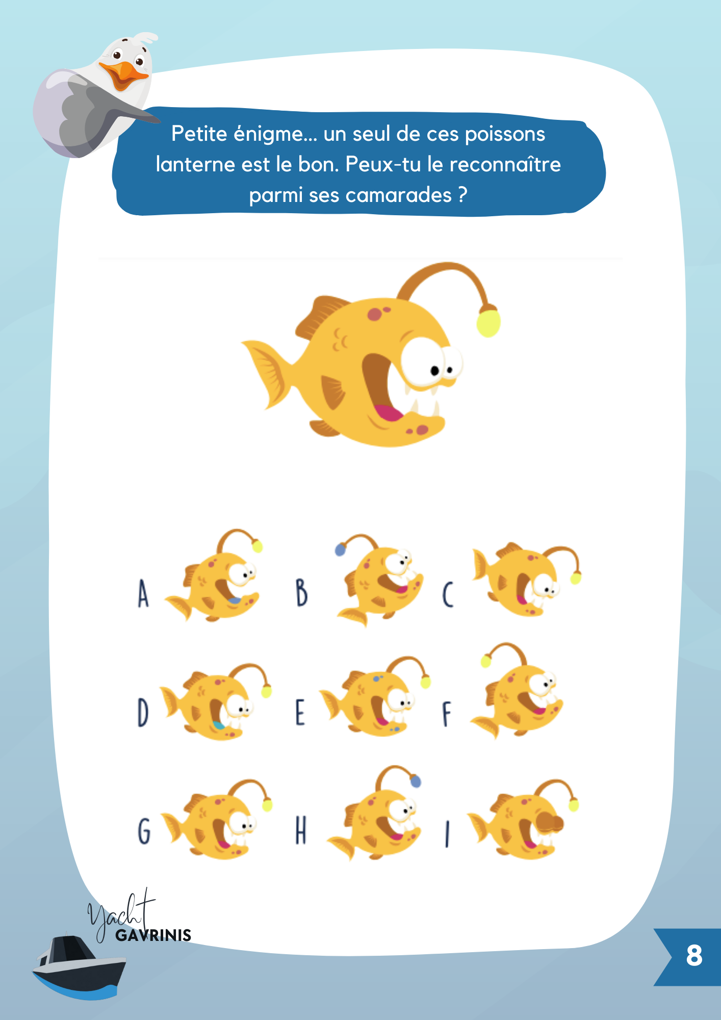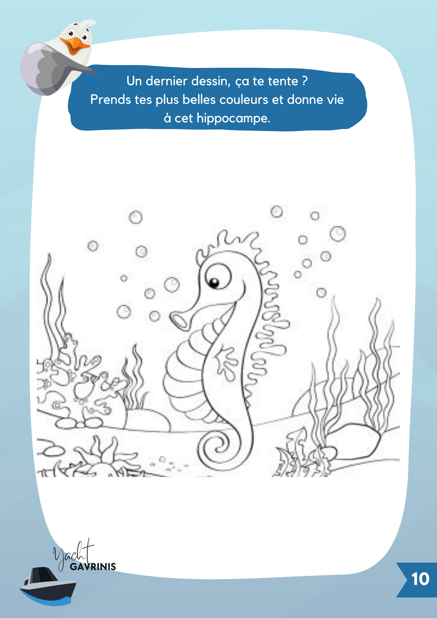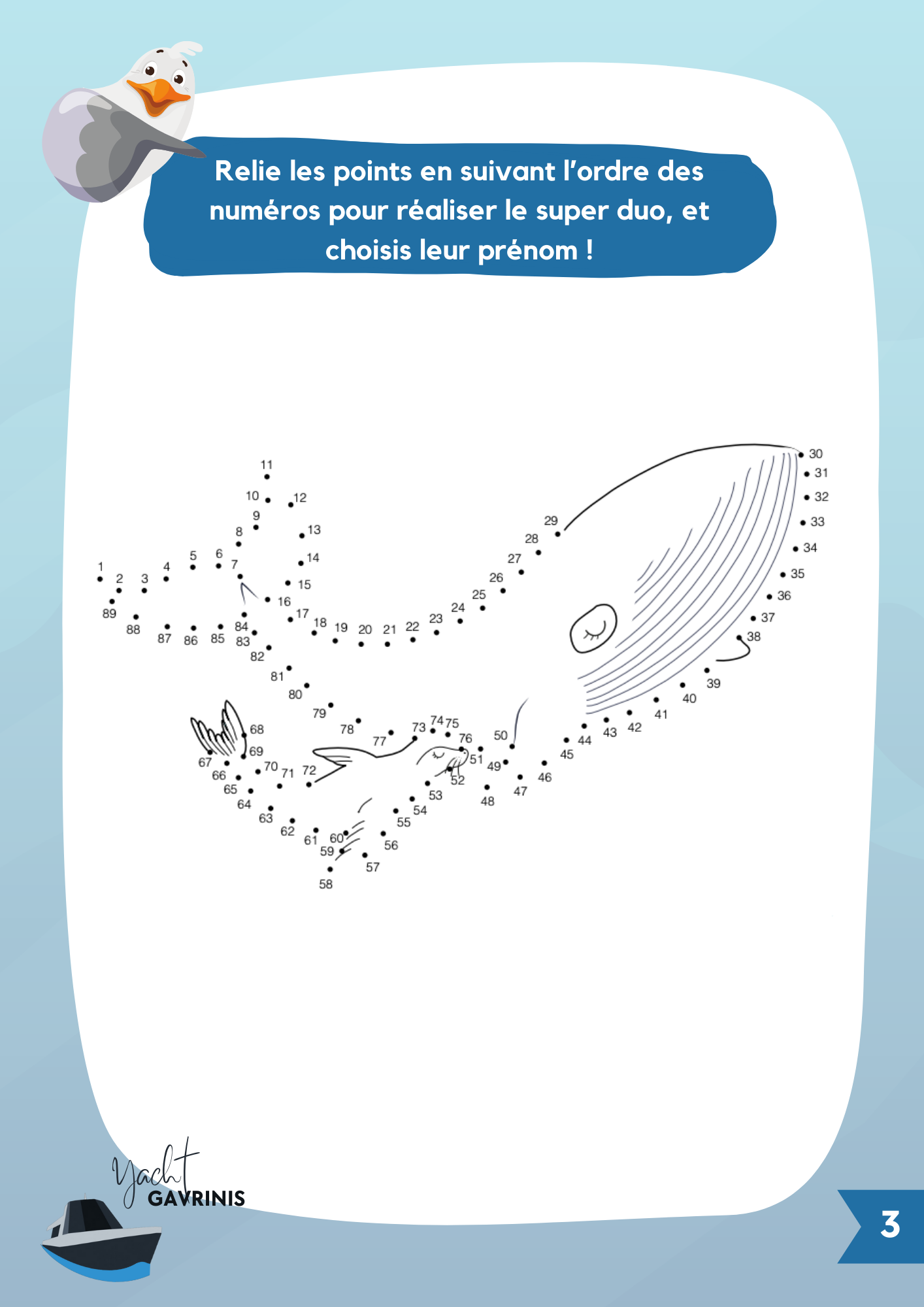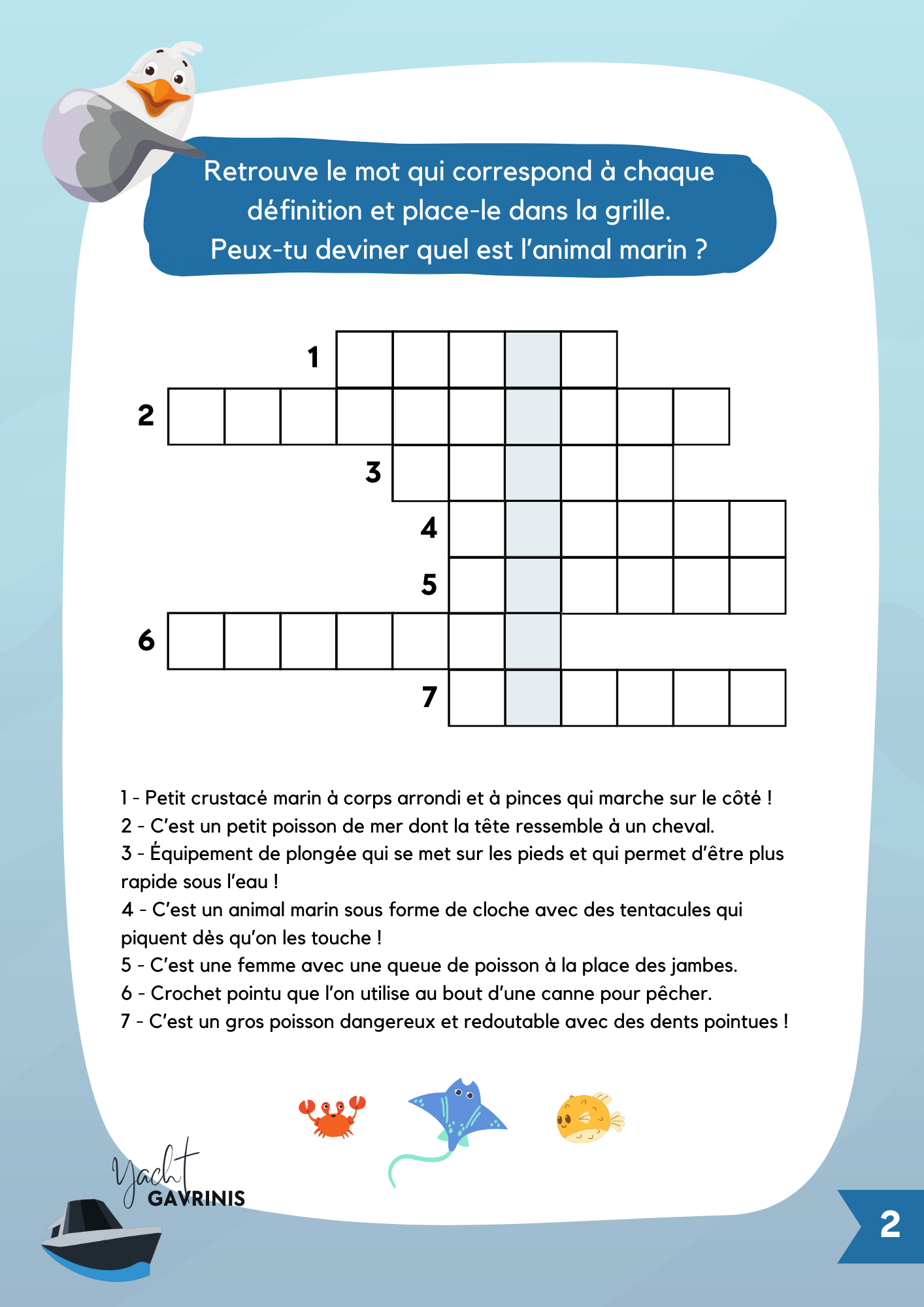 Lors de l’analyse des prestations du Yacht Gavrinis, j’ai constaté un problème récurrent : l’ennui des enfants pendant les repas. Pour y remédier, j’ai pris l’initiative de créer un carnet de jeux et de dessins, entièrement imaginé et conçu par moi-même.