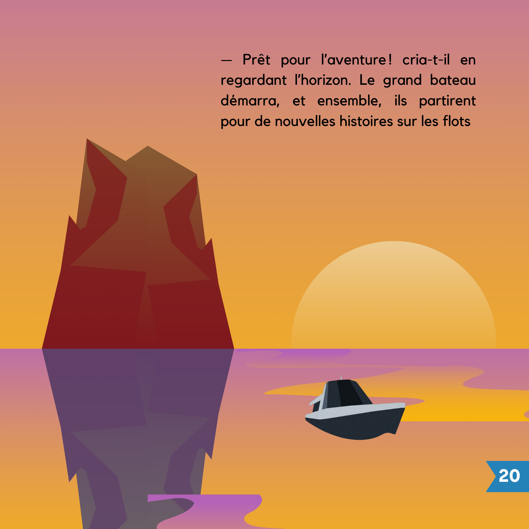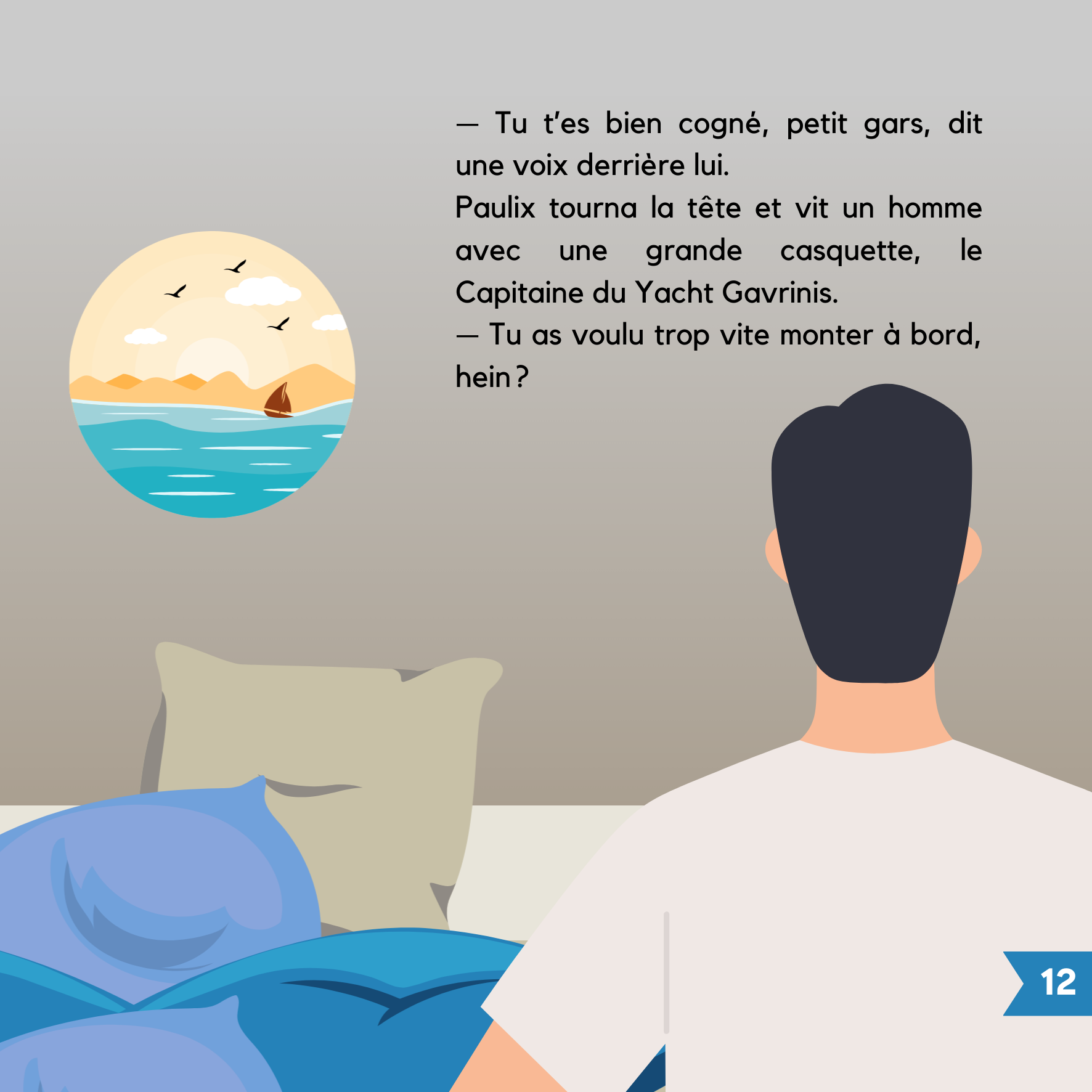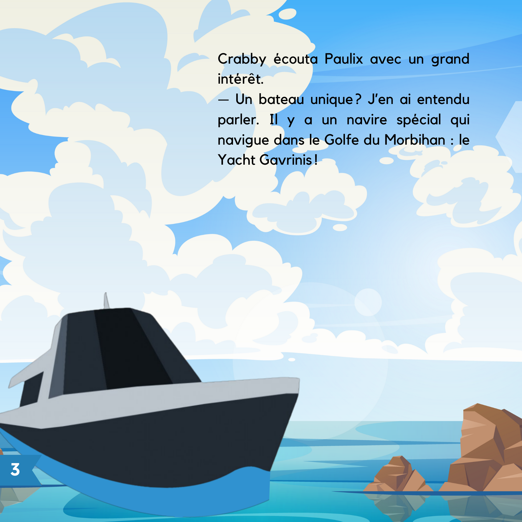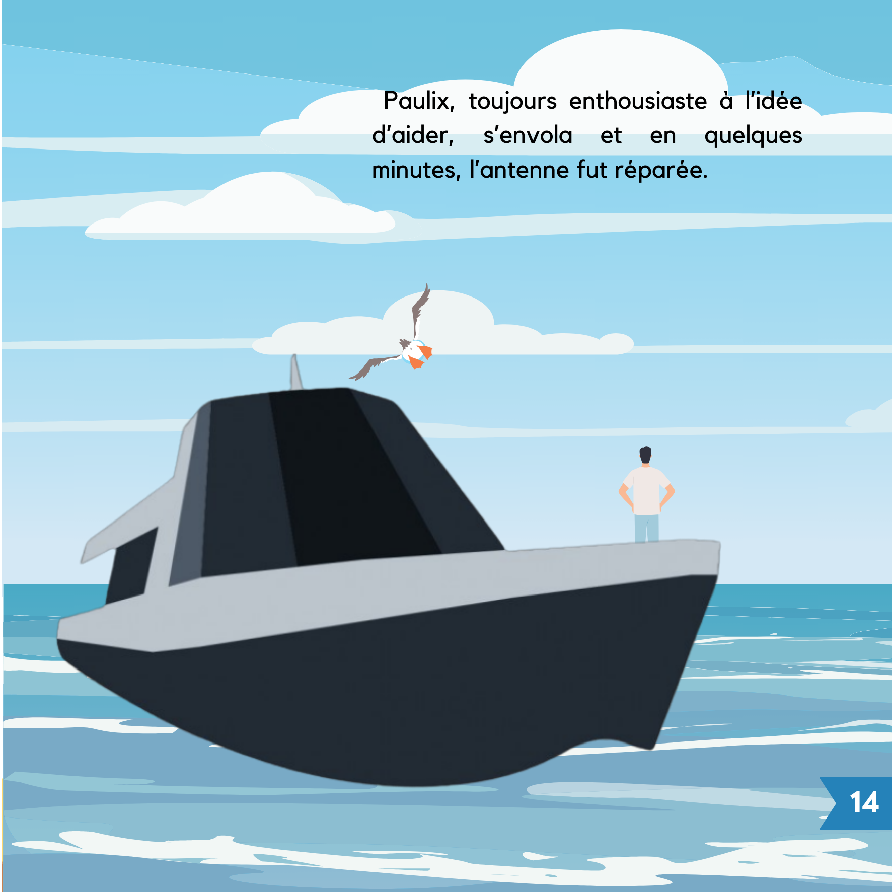 Lors de mon alternance avec le Yacht Gavrinis, j’ai pris l’initiative de créer une histoire autour de Paulix, la mouette emblématique et mascotte du bateau. Ce projet a été entièrement imaginé et réalisé par mes soins, de l’écriture de l’histoire à la conception des visuels, jusqu’à l’organisation de l’impression finale chez l’imprimeur.