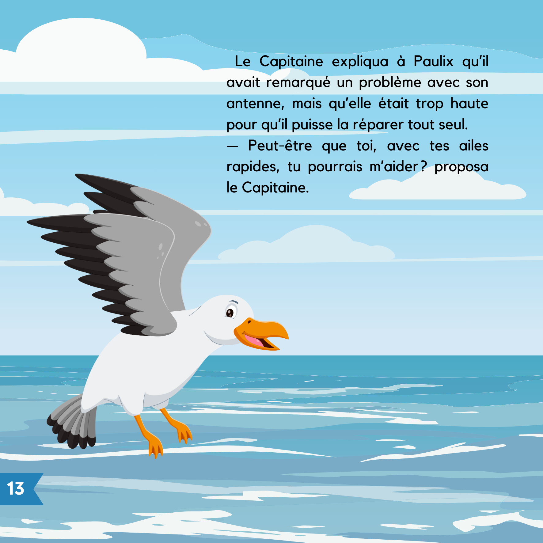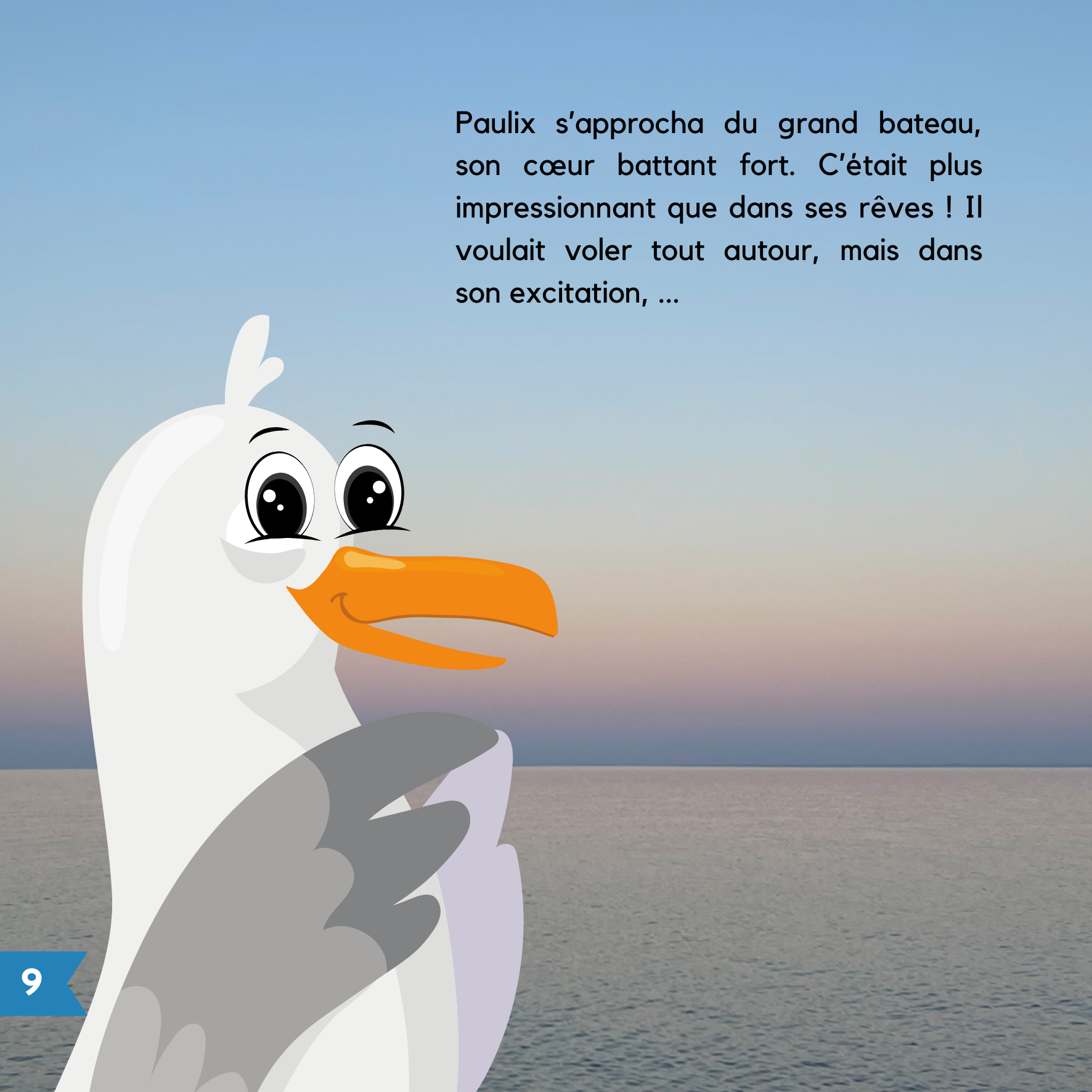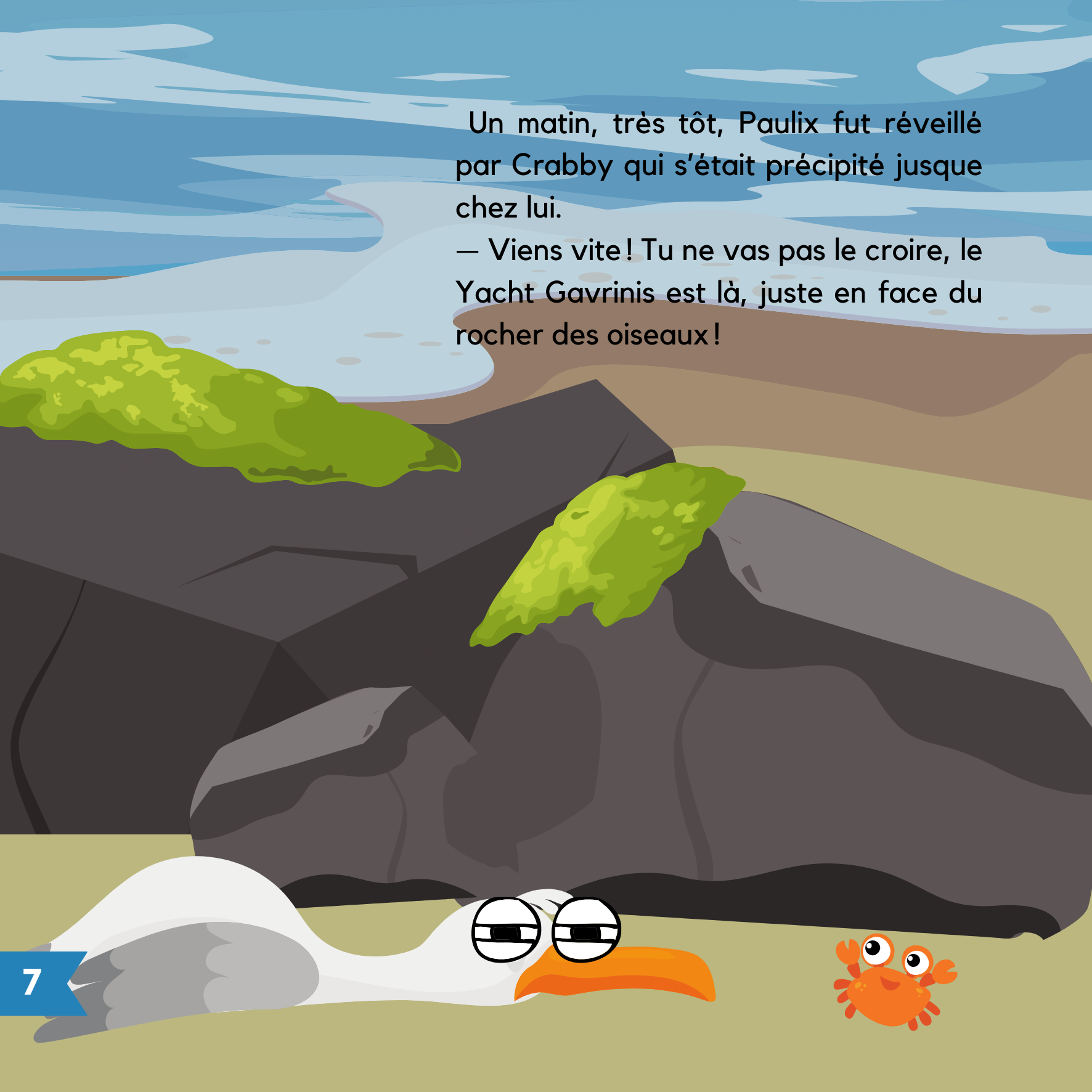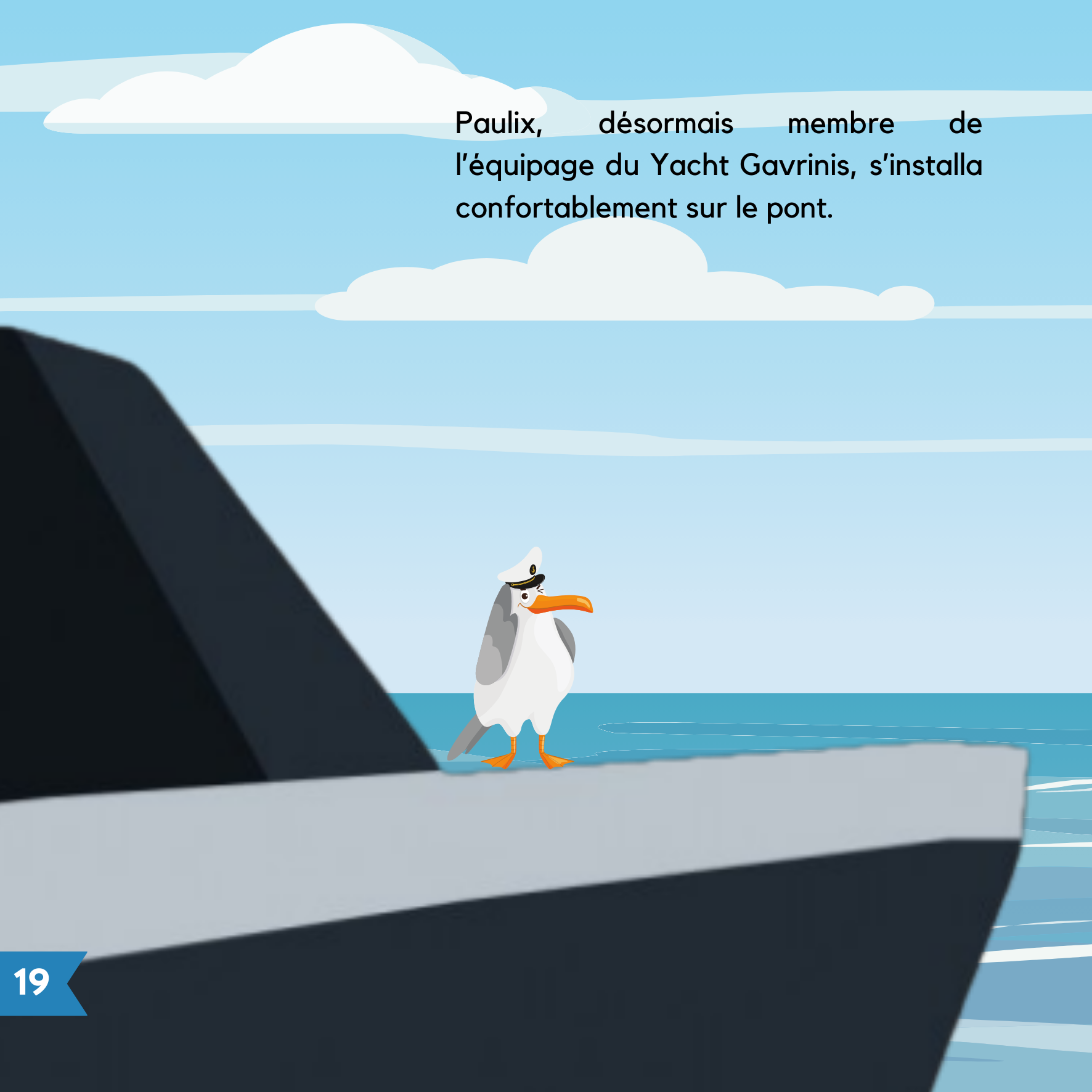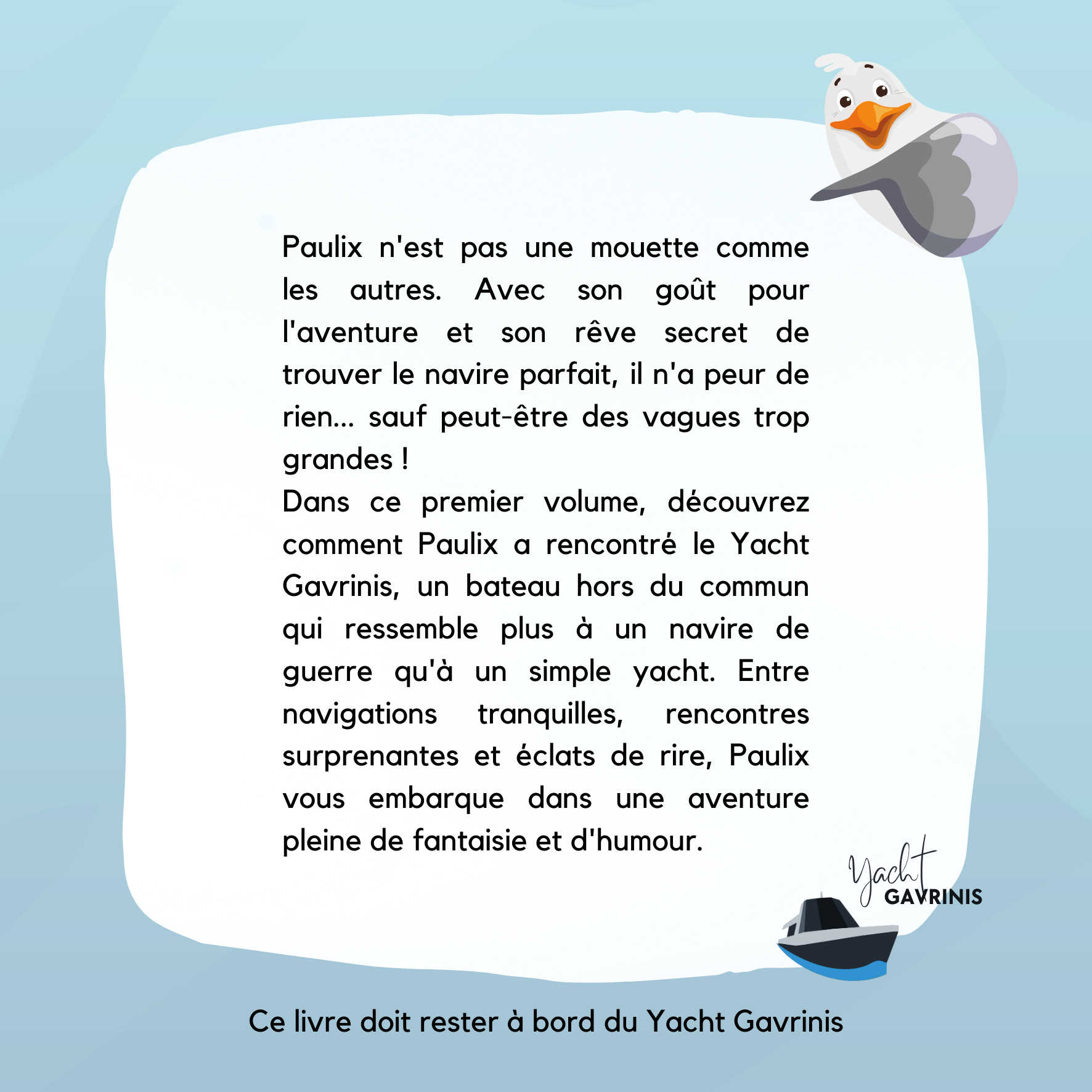 Ce premier tome raconte la naissance de Paulix et sa découverte du Yacht Gavrinis. Au fil des pages, on suit cette mouette malicieuse et rêveuse qui, après avoir aidé l’équipage à réparer l’antenne du navire, trouve enfin un lieu unique qu’elle peut appeler « chez elle ».